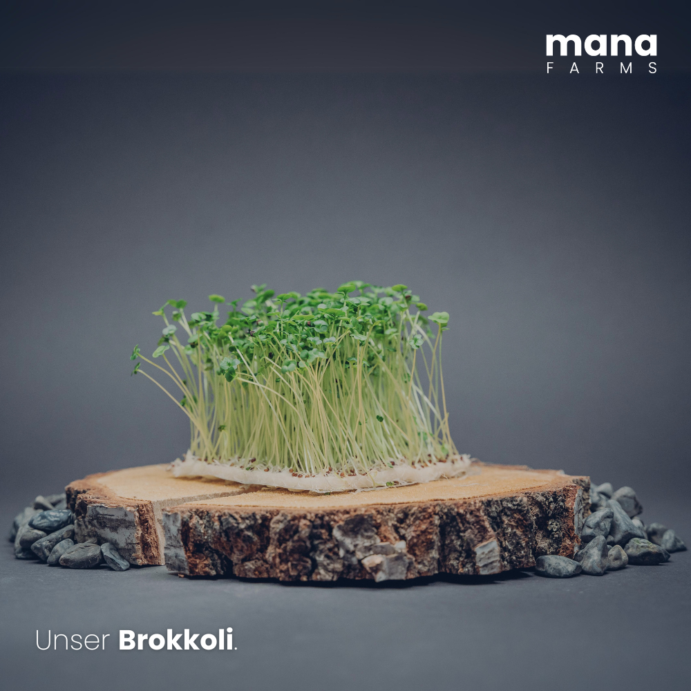 Brokkoli-Microgreens punkten mit ihrem milden, leicht süßlichen Geschmack. Reich an Nährstoffen sind sie roh über Salaten ein Genuss oder gedünstet eine gesunde Beilage.